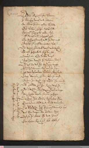 | Keywords: Wappengedicht Nützel GNM 1.jpg Gedicht auf das Wappen der Familie Nützel abgegeben an GNM Archiv RSt Nürnberg XVIII Nützel Nr 29 <poem> Ein edler altgeschlechter Stamm Zu Nürnberg werth vndt lobesam der fhürrt In eim rohten Schildt Drey Silbern Lylgen wolgebildt Die nach Triangels orden stehn alß Die auß eim Triangel gehn Der Doch geschwaift vndt In der mitt Gespitzt ist nach Diemantten Sitt Die Ritter helmdeck Weiß vndt Roht Ein roht gezirrkelt küssen hat Darauß ein Lilig Silber Weiß Geruohsam wechst zuo Schönem Preiß; Ob wol die vor Ihr Deutung tragn Muß Ich die mein Doch auch hir sagn; In dem Vhralten Edlem Gschlecht Drey Vornehm Lylien stehn so recht; Daheim Im Raht hat EIN' Ihr frucht; Die ander sich im Krieg versucht; Die DRITT Durch Raisen wol erwogn Vom Kayser wirdt herfür gezogn; Die Drey Ihrs Edlen Gschlechtes Ehrn Dreyfach mit blutt vndt frucht vermehrn Die VIERD Ich Ansprech drumb so frey Vmb Ehrn wegen der Andren Drey Daß sie zu Gottes Ehr vndt Preiß Der freyen Künst sich frisch befleiß Die vierdt noch Jung vndt frisch dabey Nichts wirdt nachgebn den andren Drey Ihr wirdt auch gebn Der Liebe Gott Daß sie Ihr frucht wol rhümlich hatt Vndt entweder mit starker Handt Oder Weisem raht dem Vatterlandt Oder auch aus Kaysers Hoff dem Reich Besonder Dien oder alle Zugleich O Edler Nützell wolgedacht Hab dein vier Lilgen wol In acht Dein Ehr ist Dir von Gott vermacht Von Leonhardo Artopaeo ali a s becken gemacht </poem> <br /><br /> Laut http //forum heraldik-und-kunst de/index php topic 26 150 forum heraldik-und-kunst de wohl zwischen 1604 und 1614 entstanden Die vier erwähnten Familienmitglieder könnten sein Hans Nützel 1540-1620 Ratsherr Georg Paul Nützel 1574-1643 evtl mit militärischem Rang Karl Nützel 1557-1614 kaiserlicher Rat Gabriel Nützel 1589-1638 damals 15-25 Jahre http //dlib gnm de/item/Hs17003-11/1 between 1604 1614 estimated Leonhard Artopaeus Beck <gallery> Wappengedicht_Nützel_GNM_2 jpg Seite 2 </gallery> PD-old-100 Coats of arms of Nützel family Books in the Germanisches Nationalmuseum Heraldic books |