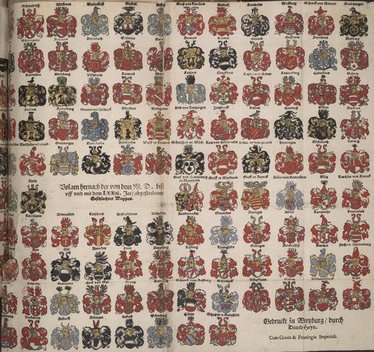 | Keywords: Wappentafel Stift Würzburg und Franken 2.jpg  Der Geschlechter von Fursten Graffen Herrn vnd vom Adel Wappen mit Schilten vnd Helmen so von dem hochloblichen Stifft Wirtzburg vnd Hertzogthumb zu Francken Lehen Tragen Druck handkoloriert http //lcweb2 loc gov/cgi-bin/ampage collId rbc3 fileName rbc0001_2011rosen0709page db 1573 David Heyn printer <gallery>Wappentafel Stift Würzburg und Franken 1 jpg first part of the scan</gallery> PD-old-100 Armorials from Germany Coats of arms from Würzburg Coats of arms of families of Franconia 1573 engravings Coats of arms of Thüngfeld family Coats of arms of Venningen family ImageNote 1 1515 1817 235 218 2719 2559 2 Coat of arms of Thüngfeld family ImageNoteEnd 1 |