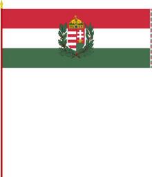 | Keywords: War Flag of Hungary (1939-1945, size IV; with staff).svg War Flag of the Kingdom of Hungary from 1 January 1939 to 8 May 1945 “ size IV 250 X 100 cm “ for use on one-storey or mezzanine military buildings Magyar Királyság hadizászlaja 1939 január 1 Ă©s 1945 május 8 között egyemeletes vagy magas földszintű katonai Ă©pĂĽletek rĂ©szĂ©re 2013-12-03 20 15 23 own cite journal 45000/ElnöksĂ©g A “ 1938 számĂş körrendelet M kir honvĂ©d csapatzászlĂłk m kir honvĂ©d lobogĂłk Ă©s a nemzeti lobogĂł rendszeresĂtĂ©se HonvĂ©dsĂ©gi Közlöny 15 December 1938 65 32 317 “318 War Flag of Hungary 1939-1945 size IV svg Thommy <gallery> File War Flag of Hungary 1939-1945 size I svg File War Flag of Hungary 1939-1945 size II svg File War Flag of Hungary 1939-1945 size III and V svg File War Flag of Hungary 1939-1945 size IV svg File War Flag of Hungary 1939-1945 size III and V svg File War Flag of Hungary 1939-1945 size VI svg </gallery> <gallery> File War Flag of Hungary 1939-1945 size I; with staff svg File War Flag of Hungary 1939-1945 size II; with staff svg File War Flag of Hungary 1939-1945 size III; with staff svg File War Flag of Hungary 1939-1945 size IV; with staff svg File War Flag of Hungary 1939-1945 size V; with staff svg File War Flag of Hungary 1939-1945 size VI; with staff svg </gallery> cc-zero PD-Hungary Insignia Flags with one crown with cross Flags with patriarchal cross Flags with three horizontal stripes of red white green combination Flags with two crowns Flags with wreaths Military flags of Hungary SVG flags - military of Hungary SVG flags - historical of Hungary Uploaded with UploadWizard War flags |