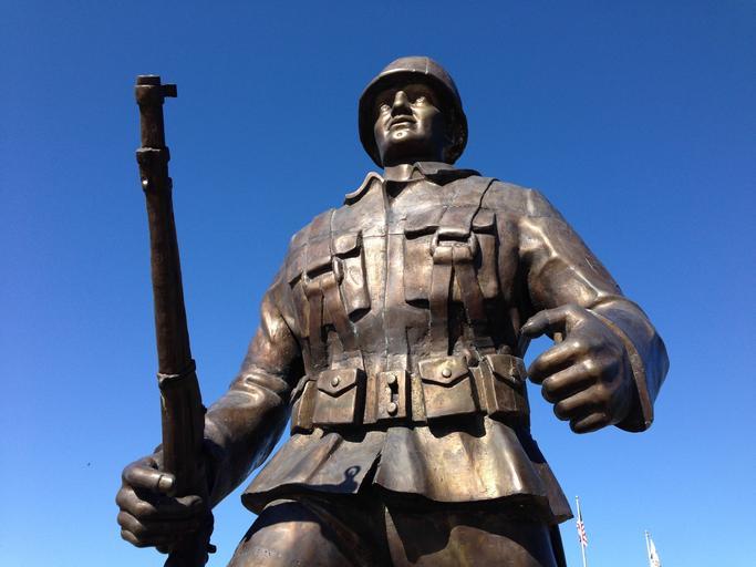 Keywords: war memorial statue monument warrior normandy cemetery world war ii army brave bravery hero honor death remembrance soldier