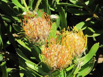 | Keywords: Waratahs White.JPG Leucospermum conocarpodendron Waratahs White ” a Leucospermum cultivar In the botanic garden Perth WA Australia Own 2010-10 Dinkum Cc-zero Leucospermum conocarpodendron Close-ups of Proteaceae flowers Leucospermum conocarpodendron Note I am just begining with the names of flowers Please bear with me As this photo was taken in Western Australia Banksia formosa seemed to be appropriate However if you look at the form of the leaves you'll see that they are different On the other hand I found in my books recently purchased a drawing of Leucospermum conocarpodendron And for this flower the leaves have the same form and the inflorescence is identical So I think I took a photo of Leucospermum conocarpodendron that day in the Botanic Garden in Perth |