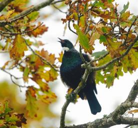 | Keywords: outdoor tree autumn new zealand newzealand tui sky feathers black nature animals plant green gold Hard to capture, these enigmatic NZ favourites, the Tui, offer delightful bird song, most often in the mornings and late in the evenings, they are nectar feeders, and have one of the largest arrays of warbling noises within the NZ bird structure. They are quite protective of their territory, and can be known to dive on humans and other animals to warn them away from nests and favourite feeding grounds Hard to capture, these enigmatic NZ favourites, the Tui, offer delightful bird song, most often in the mornings and late in the evenings, they are nectar feeders, and have one of the largest arrays of warbling noises within the NZ bird structure. They are quite protective of their territory, and can be known to dive on humans and other animals to warn them away from nests and favourite feeding grounds |