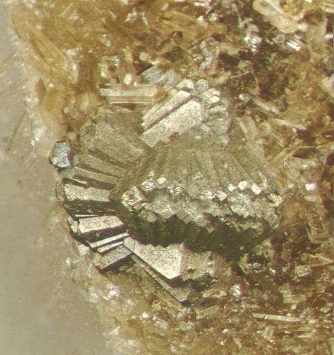 Keywords: Wardite, Childrenite-Eosphorite series-321742.jpg The diameter of the group is ~ 0 9 mm The only sulfides listed for Rapid Creek are pyrite and chalcopyrite I don ™t think this is pyrite unless it ™s a pseudomorph so it must be chalcopyrite QED The little brownish prisms are childrenite or eosphorite All these xls sit on the wardite shown in File Wardite _Childrenite-Eosphorite_series-199243 jpg Wardit Fundort Rapid Creek Bergbaugebiet Dawson Yukon Territorium Kanada Beschreibung Der Durchmesser der Gruppe beträgt ~ 0 9 mm Die einzigen für den Fundort Rapid Creek registrierten Sulfide sind Pyrit und Chalkopyrit Ich denke nicht dass es Pyrit ist außer es wäre eine Pseudomorphose Es muss also Chalkopyrit sein Die kleinen bräunlichen Prismen bestehen aus Childrenit oder Eosphorit All diese Kristalle sitzen auf einem Warditkristall siehe File Wardite _Childrenite-Eosphorite_series-199243 jpg http //www mindat org/photo-321742 html 2010-07-18 http //www mindat org/user-11235 html 0 Modris Baum <gallery> File Wardite _Childrenite-Eosphorite_series-199243 jpg File Wardite _Childrenite-Eosphorite_series-321741 jpg </gallery> Modris Baum Wardite Files by Modris Baum from mindat |