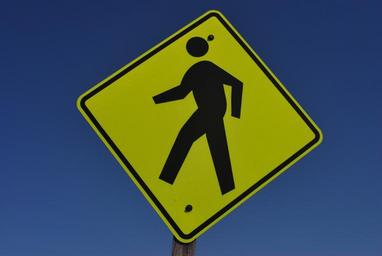 Keywords: warning crossing safety public sign caution traffic street highway pedestrian walk symbol crosswalk