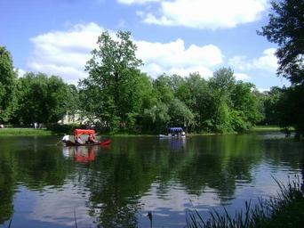 Keywords: warsaw poland sky clouds lake water reflections people boats trees nature outside country countryside park summer spring scenic