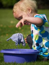 Keywords: washcloth basin bowl kitchen sink water girl play grass nature fun holiday sun child purple colors silence enjoyable