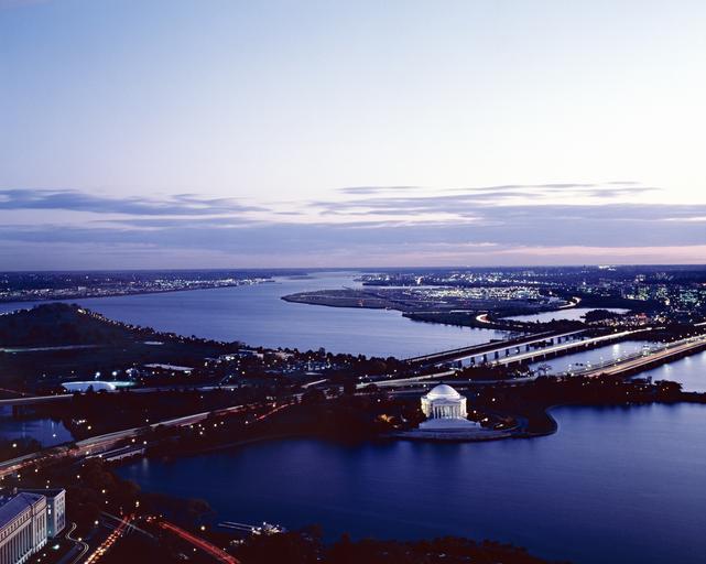 Keywords: washington monument view district of columbia dc city evening dusk sunset jefferson memorial potomac river bridges skyline cityscape landmark historical travel usa