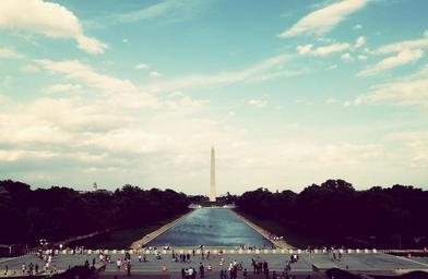 Keywords: washington monument washington dc memorial obelisk usa america architecture united states capital washington landmark water crowd people pedestrians street trees sky clouds