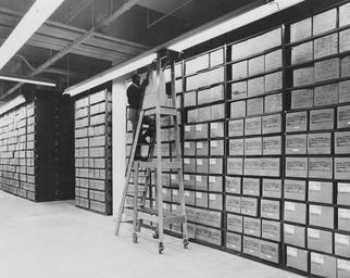 | Keywords: united states national archives personnel unitedstatesnationalarchivespersonnel nara:arcid=4477179 u.s. national archives usnationalarchives b/w bw stacks stack area stackarea blackandwhite monochrome black and white Original Caption: Washington National Records Center, stack area, with employee servicing records. U.S. National Archives’ Local Identifier: 64-NA-3502 Subjects: United States National Archives Personnel strong>Persistent URL: catalog.archives.gov/id/4477179 Repository: Still Picture Records Section, Special Media Archives Services Division (NWCS-S), National Archives at College Park, 8601 Adelphi Road, College Park, MD, 20740-6001. For information about ordering reproductions of photographs held by the Still Picture Unit, visit: www.archives.gov/research/order/still-pictures.html Reproductions may be ordered via an independent vendor. NARA maintains a list of vendors at www.archives.gov/research/order/vendors-photos-maps-dc.html Access Restrictions: Unrestricted Use Restrictions: Unrestricted Original Caption: Washington National Records Center, stack area, with employee servicing records. U.S. National Archives’ Local Identifier: 64-NA-3502 Subjects: United States National Archives Personnel strong>Persistent URL: catalog.archives.gov/id/4477179 Repository: Still Picture Records Section, Special Media Archives Services Division (NWCS-S), National Archives at College Park, 8601 Adelphi Road, College Park, MD, 20740-6001. For information about ordering reproductions of photographs held by the Still Picture Unit, visit: www.archives.gov/research/order/still-pictures.html Reproductions may be ordered via an independent vendor. NARA maintains a list of vendors at www.archives.gov/research/order/vendors-photos-maps-dc.html Access Restrictions: Unrestricted Use Restrictions: Unrestricted |