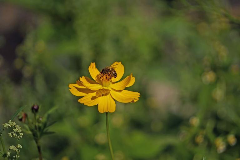 Keywords: wasp bee blossom bloom close insect collect nectar flower yellow