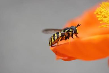 Keywords: wasp poppy insect pollination animal collect nectar bee orange flower blossom bloom collect pollen plant nature food intake close garden