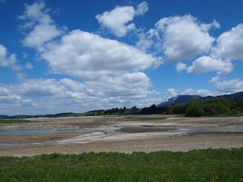 Keywords: Wasserarmer forggensee.JPG de am Forggensee zur Trockenzeit ; Mitte Mai 2012 2012-05-17 own Angela Huster cc-zero Uploaded with UploadWizard Forggensee with low levels of water