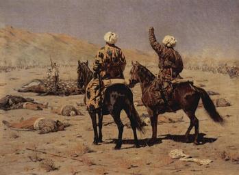 | Keywords: Wassilij Wassiljewitsch Wereschtschagin 003.jpg Artwork title О войне about war ber den Krieg oil canvas cm 58 4 74 State Tretyakov Gallery Ту кестанской се ии Turkestan-Zyklus The Yorck Project 10 000 Meisterwerke der Malerei DVD-ROM 2002 ISBN 3936122202 Distributed by DIRECTMEDIA Publishing GmbH 1873 Creator Vasily Vereshchagin http //mail wikipedia org/pipermail/wikide-l/2005-April/012195 html Other versions PD-old-100 PD-Art-YorckProject Realist paintings of horses 1873 paintings from Russia Paintings by Vasily Vereshchagin Irregular cavalry Paintings of men on horseback |