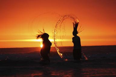 Keywords: water battle friends beach woman happy sea water sunset holiday swim inject hair