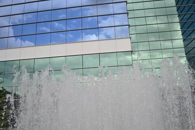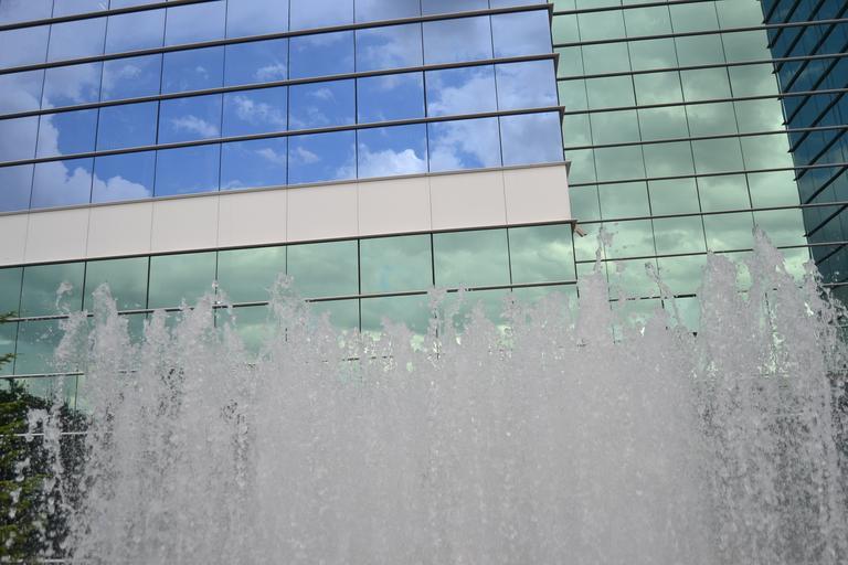 Keywords: water building skyline sky clouds cities buildings fountain city skyscraper