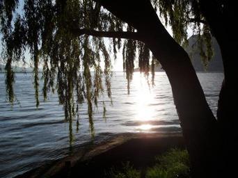 Keywords: water dam hartbeespoort dam south africa sunset tree trees branches green summer