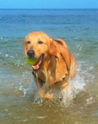 Keywords: Water dog.jpg en Golden retriever fetching a tennis ball from the ocean <http //daisythepuppy blogspot com> own Photographer2010 2010-10-31 Golden Retriever