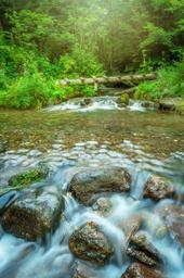 Keywords: water forest green long exposure slovakia light sun tree summer sunset dawn rocks rock bridge to relax peace of mind