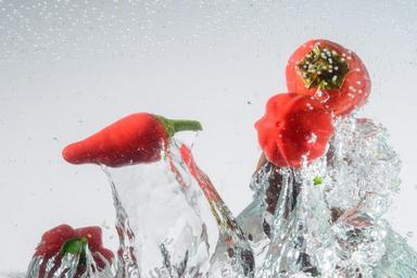 Keywords: water inject chilli spray water splashes spill over drip wave dynamics movement immersion