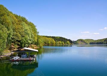 Keywords: water lake blue landscape waters idyllic boat house sky hill