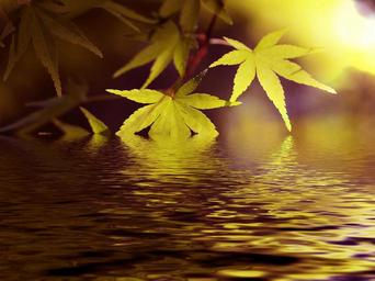 Keywords: water lake maple fresh green green japanese maple leaves may background