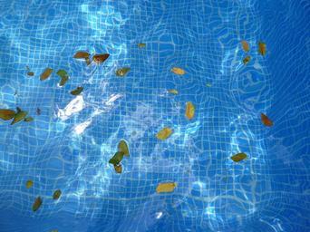 Keywords: water leaves float floating background texture light dappled complimentary colors yellow leaves blue light blue