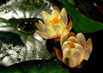 Keywords: water lilies blossom bloom water pond nature aquatic plant lake rose bloom flower biotope green white leaves nuphar lutea garden lichtspiel plant close flora botany raindrop drop of water