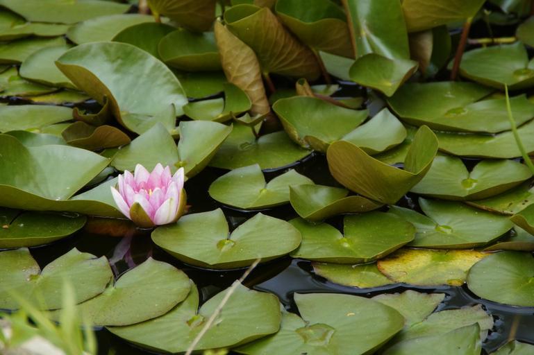 Keywords: water lily leaves floating plants lily pad blossom bloom pink pond swim lake waters water garden pond