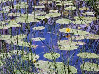 Keywords: water lily leaves water lily flower water leaf flower reed yellow green waterlily plant nature foliage inflorescence