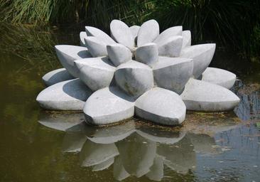 Keywords: water lily stone sculpture mirroring hell art pond water state garden show öhringen reflection monument modern concrete