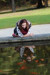 Keywords: water mirroring creature shades of brown reflection animal girl photographer camera photography fish pond park tree water surface impressionism