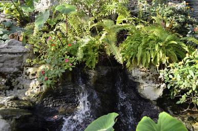 Keywords: water nature flower leaves pink red flower green leaves waterfall pink flower