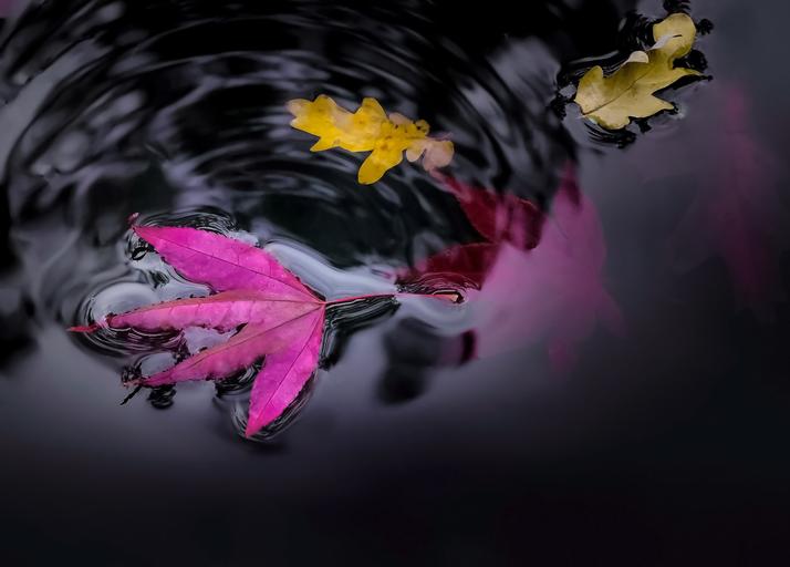 Keywords: water pond leaves colorful oak maple floating ripple black nature lake river autumn fall colored park scene reflection natural