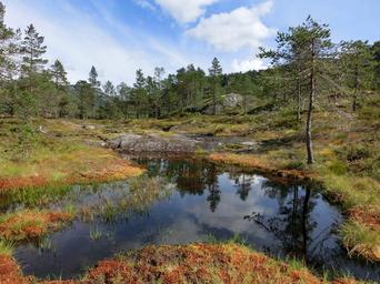 Keywords: water pond pools lake peaceful mirroring heide mountains trees summer norway