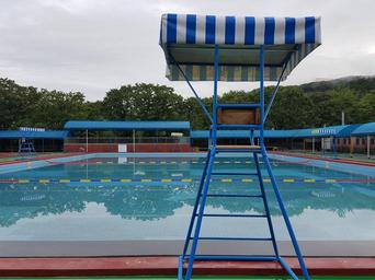 Keywords: water pool safety outdoor swimming pool break recreation area swimming healing stability summer valley water travel cloudy day sky swelter