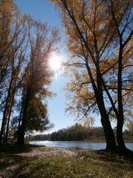 Keywords: water small river river autumn trees nature stroll reflection in the water quiet river landscape autumn on the river autumn beach leaves yellow leaves autumn day altai
