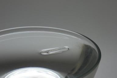 Keywords: Water surface tension 1.jpg en Demonstration of surface tension - a paperclip floating on water Own Kaldari 2009-03-11 Surface tension Paperclips