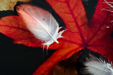 Keywords: water water surface spring bird feathers red foliage leaf