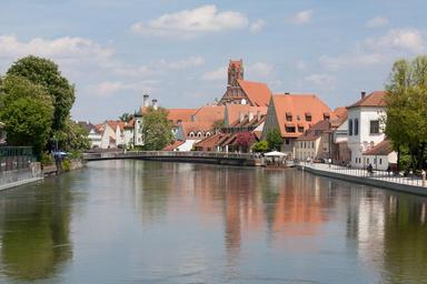 Keywords: water waters mirroring nature mood atmosphere light sun building landshut bavaria germany river isar summer romantic old town bank promenade tree sky clouds blue white tourism city breaks historically architecture church
