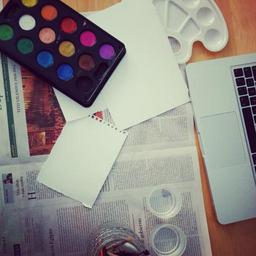 Keywords: watercolors newspaper painting mess watercolour paints