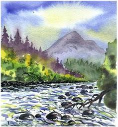 Keywords: watercolour painting landscape bach water trees