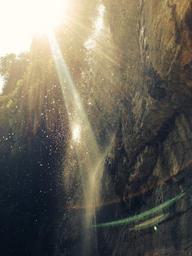 Keywords: waterfall backlit rock wall water stream nature cascade fall wet light wild scenic sunlight splash cliff spray bright drops