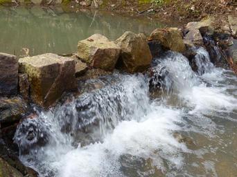 Keywords: waterfall dam water bubble cold frisch clean bach river stones pebbles block aesthetic branches foam build play game oxygen