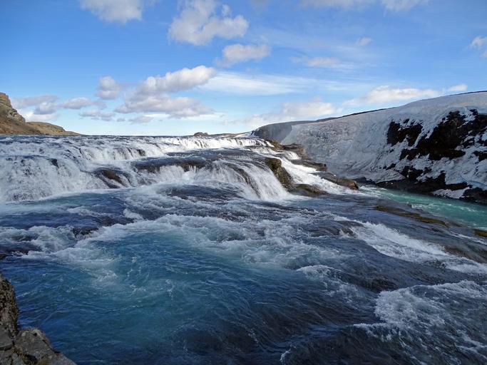Keywords: waterfall iceland gullfoss water landscape nature white water snow
