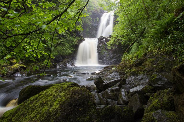 Keywords: waterfall isle of skye skye scotland nature idyllic atmospheric landscape water highlands and islands river forest bach tree rock waters wilderness