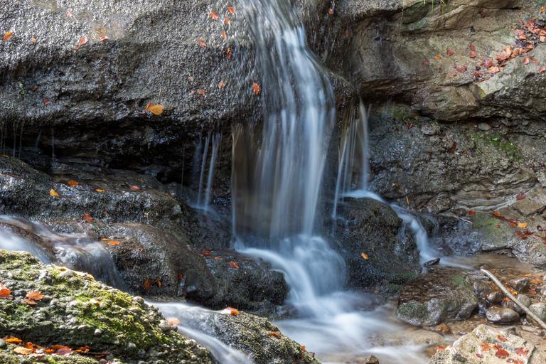 Keywords: waterfall long exposure water leaf stone blue orange