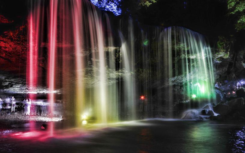 Keywords: waterfall natural japan river water night light up