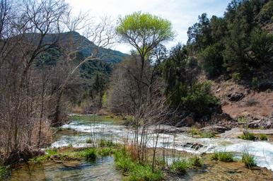 | Keywords: arizona coconino national forest coconinonationalforest forest service forestservice fossil creek fossilcreek red rock ranger district redrockrangerdistrict tonto national forest tontonationalforest usfs canyon creek forest outdoors riparian water camp verde campverde united states unitedstates outdoor Fossil Creek seems to appear out of nowhere, gushing 20,000 gallons a minute out of a series of springs at the bottom of a 1,600 foot deep canyon. Over the years these calcium laden waters have laid down huge deposits of a type of limestone called travertine. That rock-like substance encases whatever happens to fall into the streambed, forming the fossils for which the area is named. Fossil Creek is one of two "Wild and Scenic" rivers in Arizona. This special designation was achieved when the Irving power plant was decommissioned, and removal of flume and dam on the creek allowed this magnificent creek to once again flow freely through Arizona's arid landscape. Most people come to Fossil Creek to sunbathe, wade, hike and birdwatch. It's also a great place to take photographs. The lushness of the riparian area strikes a sharp contrast to the brittle desert that surrounds it. Increasing popularity has led to the Coconino and Tonto National Forests to implement a parking permit reservation system in 2016. Reserved parking permits give visitors the peace of mind knowing they'll have a spot waiting for them in this remote location. Many visitors drive two or three hours to get to the creek. The final descent to the creek at the bottom of a canyon is on an extremely rough, rocky jeep road. Photo by Deborah Lee Soltesz, March 2, 2016. Credit: USFS Coconino National Forest. Learn more about visiting Fossil Creek, Fossil Springs Wilderness, and the Coconino National Forest. Fossil Creek seems to appear out of nowhere, gushing 20,000 gallons a minute out of a series of springs at the bottom of a 1,600 foot deep canyon. Over the years these calcium laden waters have laid down huge deposits of a type of limestone called travertine. That rock-like substance encases whatever happens to fall into the streambed, forming the fossils for which the area is named. Fossil Creek is one of two "Wild and Scenic" rivers in Arizona. This special designation was achieved when the Irving power plant was decommissioned, and removal of flume and dam on the creek allowed this magnificent creek to once again flow freely through Arizona's arid landscape. Most people come to Fossil Creek to sunbathe, wade, hike and birdwatch. It's also a great place to take photographs. The lushness of the riparian area strikes a sharp contrast to the brittle desert that surrounds it. Increasing popularity has led to the Coconino and Tonto National Forests to implement a parking permit reservation system in 2016. Reserved parking permits give visitors the peace of mind knowing they'll have a spot waiting for them in this remote location. Many visitors drive two or three hours to get to the creek. The final descent to the creek at the bottom of a canyon is on an extremely rough, rocky jeep road. Photo by Deborah Lee Soltesz, March 2, 2016. Credit: USFS Coconino National Forest. Learn more about visiting Fossil Creek, Fossil Springs Wilderness, and the Coconino National Forest. |