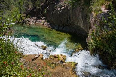 | Keywords: arizona camp verde campverde coconino national forest coconinonationalforest forest service forestservice fossil creek fossilcreek k20d national forest nationalforest pentax k20d pentaxk20d red rock ranger district redrockrangerdistrict tonto national forest tontonationalforest usfs verde valley verdevalley waterfall trail waterfalltrail canyon creek desert forest hiking outdoors riparian spring springtime trail water waterfall united states unitedstates outdoor landscape stream This large, natural waterfall on Fossil Creek is the destination of an easy, one mile hike on Waterfall Trail. A large, deep pool at the base of the fall is a popular swimming hole. Fossil Creek produces 20,000 gallons of water a minute from a series of springs at the bottom of a 1,600 foot deep canyon. This permanent water source has created a stunningly beautiful, green riparian zone rich with flora and fauna at the bottom of this arid canyon in Arizona's high desert. Travertine deposits encase whatever happens to fall into the streambed, forming the fossils for which the area is named. These deposits create deep pools along the length of the creek, providing opportunities to find more secluded swimming holes than the popular pool at the waterfall. Fossil Creek is one of two "Wild and Scenic" rivers in Arizona. This designation was achieved when the Irving power plant was decommissioned, and removal of flume and dam on the creek allowed the creek to flow free. Increasing popularity has led to the Coconino and Tonto National Forests to implement a parking permit reservation system in 2016. Reserved parking permits allow visitors to have a parking spot available in their chosen parking lot. Many visitors drive two or three hours to get to the creek. The final descent to the creek at the bottom of a canyon is on an extremely rough, rocky jeep road. In prior years, the area would often be closed to entry when it reached capacity, and potential visitors would be turned away after the long, difficult drive. Photo by Deborah Lee Soltesz, May 12, 2016. For trail and recreation information, see Fossil Creek, Fossil Springs Wilderness, and the Coconino National Forest. This large, natural waterfall on Fossil Creek is the destination of an easy, one mile hike on Waterfall Trail. A large, deep pool at the base of the fall is a popular swimming hole. Fossil Creek produces 20,000 gallons of water a minute from a series of springs at the bottom of a 1,600 foot deep canyon. This permanent water source has created a stunningly beautiful, green riparian zone rich with flora and fauna at the bottom of this arid canyon in Arizona's high desert. Travertine deposits encase whatever happens to fall into the streambed, forming the fossils for which the area is named. These deposits create deep pools along the length of the creek, providing opportunities to find more secluded swimming holes than the popular pool at the waterfall. Fossil Creek is one of two "Wild and Scenic" rivers in Arizona. This designation was achieved when the Irving power plant was decommissioned, and removal of flume and dam on the creek allowed the creek to flow free. Increasing popularity has led to the Coconino and Tonto National Forests to implement a parking permit reservation system in 2016. Reserved parking permits allow visitors to have a parking spot available in their chosen parking lot. Many visitors drive two or three hours to get to the creek. The final descent to the creek at the bottom of a canyon is on an extremely rough, rocky jeep road. In prior years, the area would often be closed to entry when it reached capacity, and potential visitors would be turned away after the long, difficult drive. Photo by Deborah Lee Soltesz, May 12, 2016. For trail and recreation information, see Fossil Creek, Fossil Springs Wilderness, and the Coconino National Forest. |