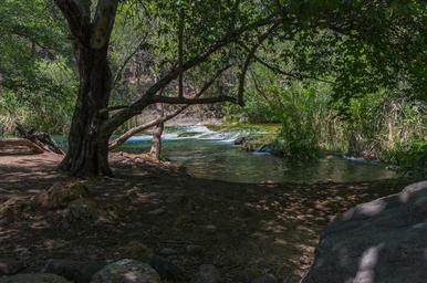 | Keywords: arizona coconino national forest coconinonationalforest forest service forestservice fossil creek fossilcreek k20d national forest nationalforest pentax k20d pentaxk20d red rock ranger district redrockrangerdistrict tonto national forest tontonationalforest usfs waterfall trail waterfalltrail canyon desert forest hiking outdoors spring springtime trail camp verde campverde united states unitedstates outdoor tree plant A large, natural waterfall on Fossil Creek is the destination of an easy, one mile hike on Waterfall Trail. A large, deep pool at the base of the fall is a popular swimming hole. Fossil Creek produces 20,000 gallons of water a minute from a series of springs at the bottom of a 1,600 foot deep canyon. This permanent water source has created a stunningly beautiful, green riparian zone rich with flora and fauna at the bottom of this arid canyon in Arizona's high desert. Travertine deposits encase whatever happens to fall into the streambed, forming the fossils for which the area is named. These deposits create deep pools along the length of the creek, providing opportunities to find more secluded swimming holes than the popular pool at the waterfall. Fossil Creek is one of two "Wild and Scenic" rivers in Arizona. This designation was achieved when the Irving power plant was decommissioned, and removal of flume and dam on the creek allowed the creek to flow free. Increasing popularity has led to the Coconino and Tonto National Forests to implement a parking permit reservation system in 2016. Reserved parking permits allow visitors to have a parking spot available in their chosen parking lot. Many visitors drive two or three hours to get to the creek. The final descent to the creek at the bottom of a canyon is on an extremely rough, rocky jeep road. In prior years, the area would often be closed to entry when it reached capacity, and potential visitors would be turned away after the long, difficult drive. Photo by Deborah Lee Soltesz, May 4, 2016. For trail and recreation information, see Fossil Creek, Fossil Springs Wilderness, and the Coconino National Forest. A large, natural waterfall on Fossil Creek is the destination of an easy, one mile hike on Waterfall Trail. A large, deep pool at the base of the fall is a popular swimming hole. Fossil Creek produces 20,000 gallons of water a minute from a series of springs at the bottom of a 1,600 foot deep canyon. This permanent water source has created a stunningly beautiful, green riparian zone rich with flora and fauna at the bottom of this arid canyon in Arizona's high desert. Travertine deposits encase whatever happens to fall into the streambed, forming the fossils for which the area is named. These deposits create deep pools along the length of the creek, providing opportunities to find more secluded swimming holes than the popular pool at the waterfall. Fossil Creek is one of two "Wild and Scenic" rivers in Arizona. This designation was achieved when the Irving power plant was decommissioned, and removal of flume and dam on the creek allowed the creek to flow free. Increasing popularity has led to the Coconino and Tonto National Forests to implement a parking permit reservation system in 2016. Reserved parking permits allow visitors to have a parking spot available in their chosen parking lot. Many visitors drive two or three hours to get to the creek. The final descent to the creek at the bottom of a canyon is on an extremely rough, rocky jeep road. In prior years, the area would often be closed to entry when it reached capacity, and potential visitors would be turned away after the long, difficult drive. Photo by Deborah Lee Soltesz, May 4, 2016. For trail and recreation information, see Fossil Creek, Fossil Springs Wilderness, and the Coconino National Forest. |
